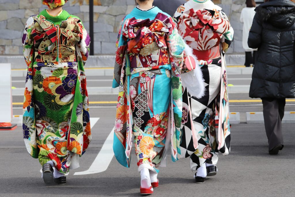 Traditional dress remains central to Seijin-shiki. Women often wear furisode, long-sleeved kimono symbolizing youth and elegance. The vivid colors and elaborate patterns express individuality and optimism. Men historically wore hakama or formal kimono, though modern participants often choose suits for practicality. At the same time, some embrace bold fashion—colorful haori coats for men or Western dresses for women—making the ceremony a vibrant showcase of both tradition and personal expression.