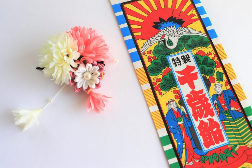 One of the most recognizable symbols of Shichi-Go-San is the Chitose Ame (千歳飴)—literally “thousand-year candy.” These long, red-and-white sticks are wrapped in bags illustrated with cranes and turtles—emblems of longevity in Japanese culture.